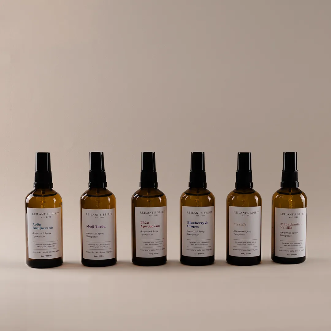 Υποδεχτείτε τη νέα σειρά αρωματικών spray υφασμάτων της Leilani’s Spirit! Απολαύστε επτά υπέροχα αρώματα, σε μια συλλογή που είναι διαθέσιμη όλο το χρόνο! Τα αρώματα που επιλέχθηκαν αποτελούν τα δικά σας best – seller των τελευταίων ετών.