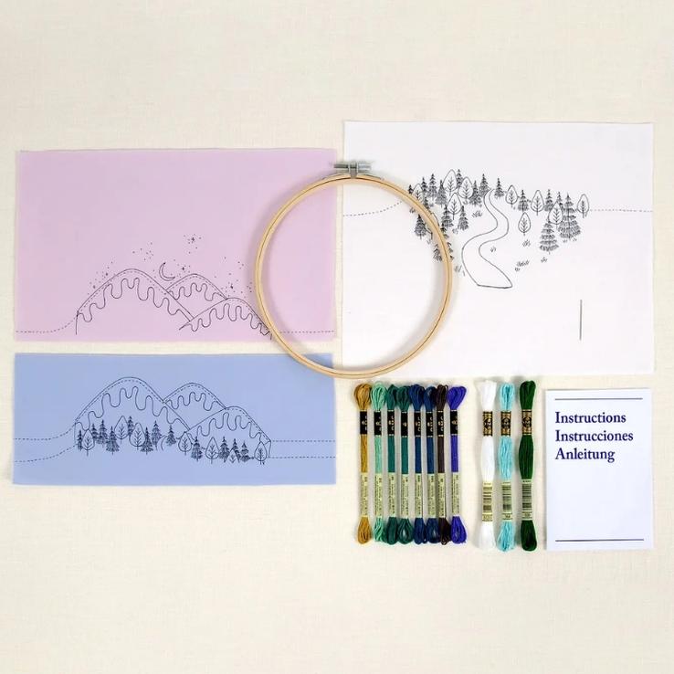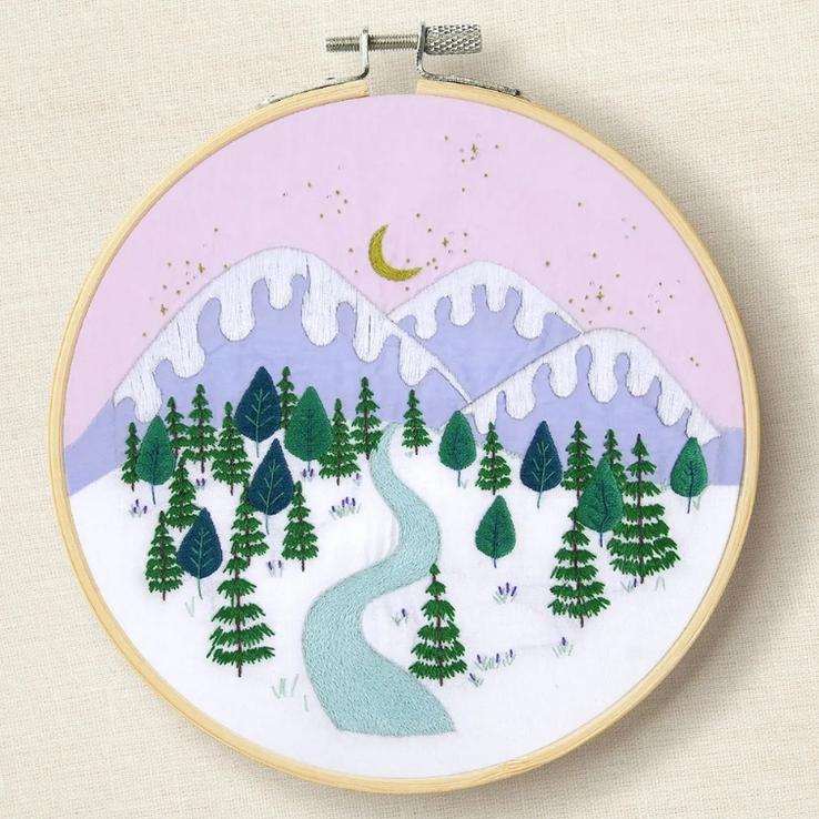 Η σχεδιάστρια Georgie K. Emery, με έδρα το Ηνωμένο Βασίλειο, δημιουργεί γοητευτικά παστέλ τοπία χρησιμοποιώντας απλικέ και κεντήματα. Αναδημιουργήστε αυτό το μαγικό χειμωνιάτικο σκηνικό χρησιμοποιώντας στρώσεις διαφορετικών υφασμάτων και κλωστή DMC Mouliné Spécial. Αυτό το κιτ περιέχει όλες τις υψηλής ποιότητας κλωστές, υφάσματα και αξεσουάρ που χρειάζεστε, καθώς και οδηγίες  χρωμάτων. Με αυτό το κιτ θα μάθετε πώς να χρησιμοποιείτε κλασικές βελονιές κεντήματος, συμπεριλαμβανομένων των ραφών και των γαλλικών κόμπων, για να προσθέσετε υφές και λεπτομέρειες.